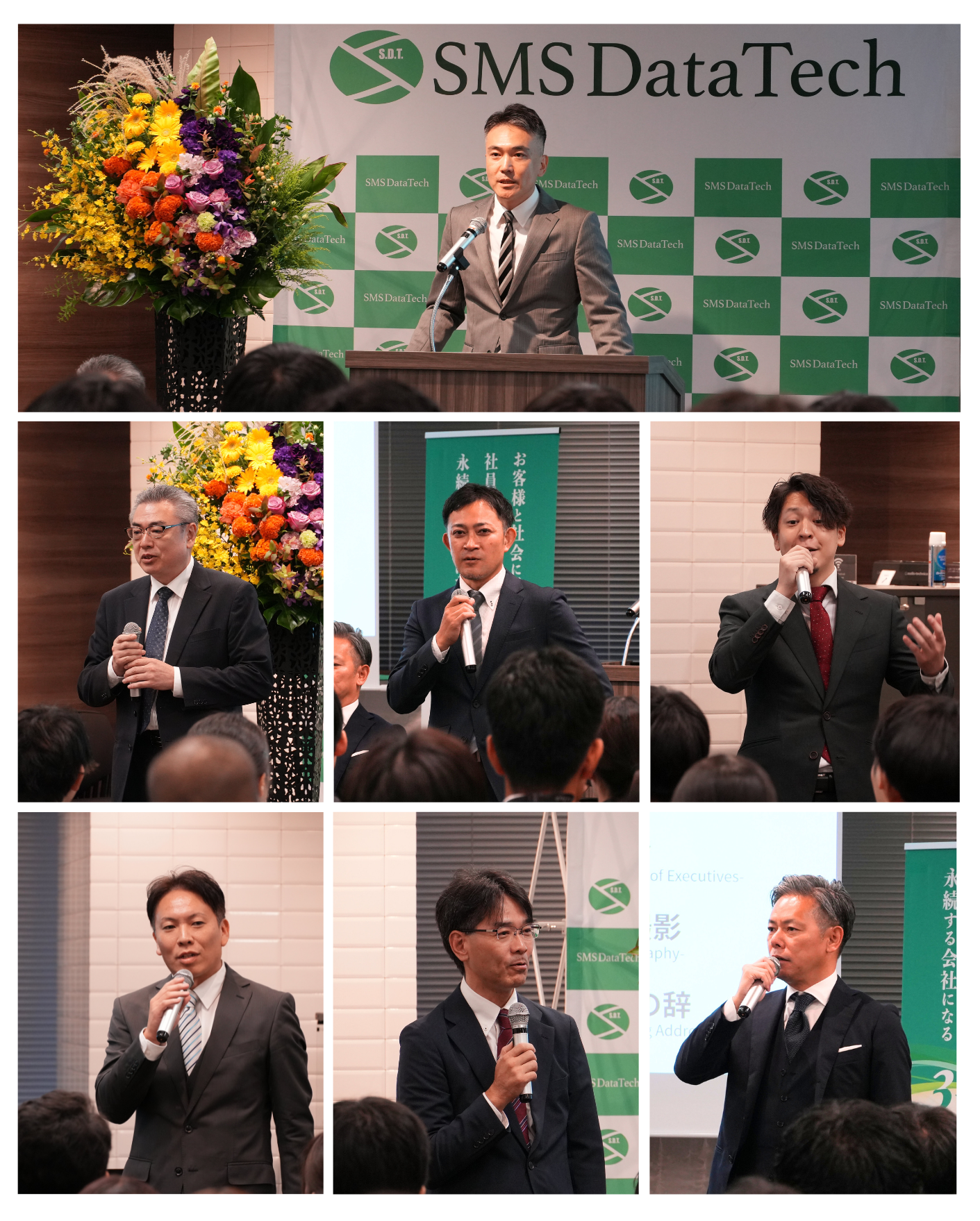 その後の社長挨拶や役員紹介でも同じテーマが取り入れられ、温かさとユーモアのあるメッセージに、