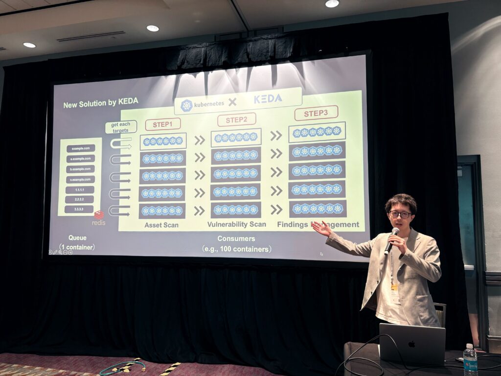 攻撃者に狙われる可能性のある部分(アタックサーフェス)を見つけることを目的として、数百のプログラム(コンテナエージェント)を動かし、インターネットに露出している顧客の弱点や設定ミスを、攻撃者と同じ視点から自動で探し出し、可視化します。